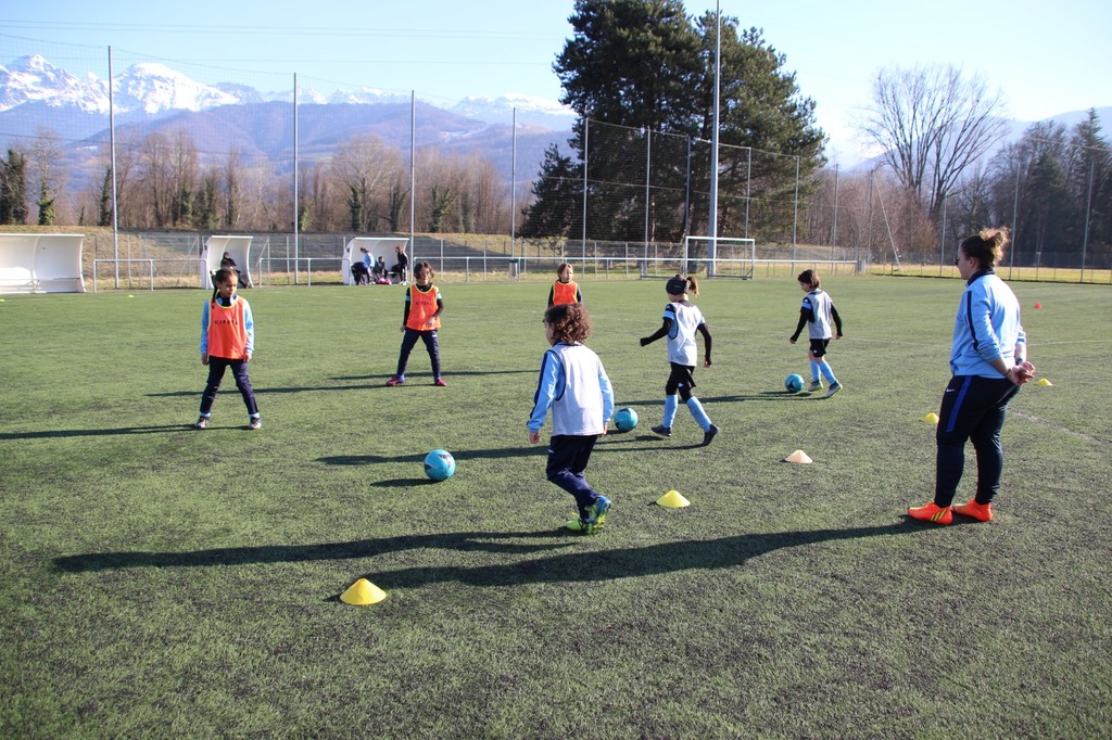 Techniquement, nous leur transmettons les bases. C'est à dire la surface du pieds adaptée pour effectuer un contrôle, une passe, un tir, ect... Mais nous travaillons aussi le positionnement de leur corps avec un énorme travail de motricité qui leur permet de mieux maitriser leur corps et ses mouvements avec et sans ballon. Chose très compliquée pour elles à leur âge.